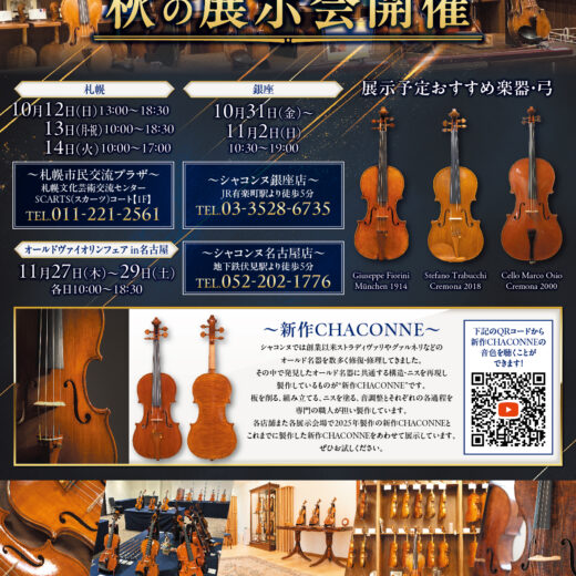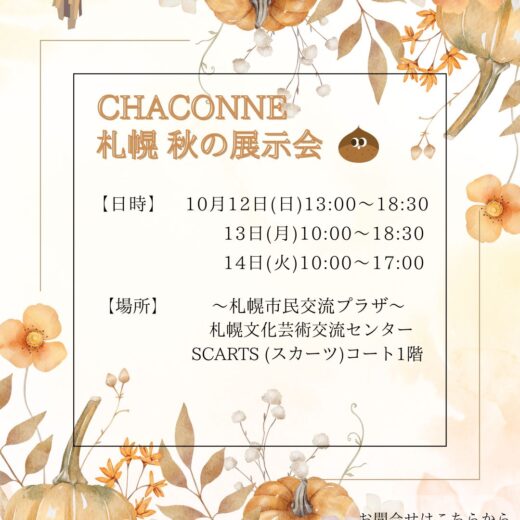 札幌にて展示会を開催いたします。 新しく仕上がったCHACONNEのほか、新入荷の...