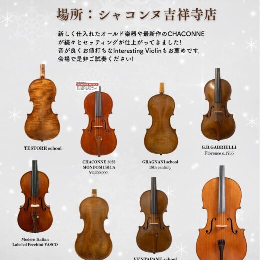 シャコンヌでは、学生の皆様やこれから楽器を始められる方にもおすすめの楽器を揃えてお...
