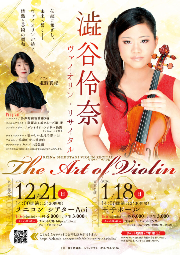 澁谷伶奈さんのリサイタルが名古屋・東京で開催されます。